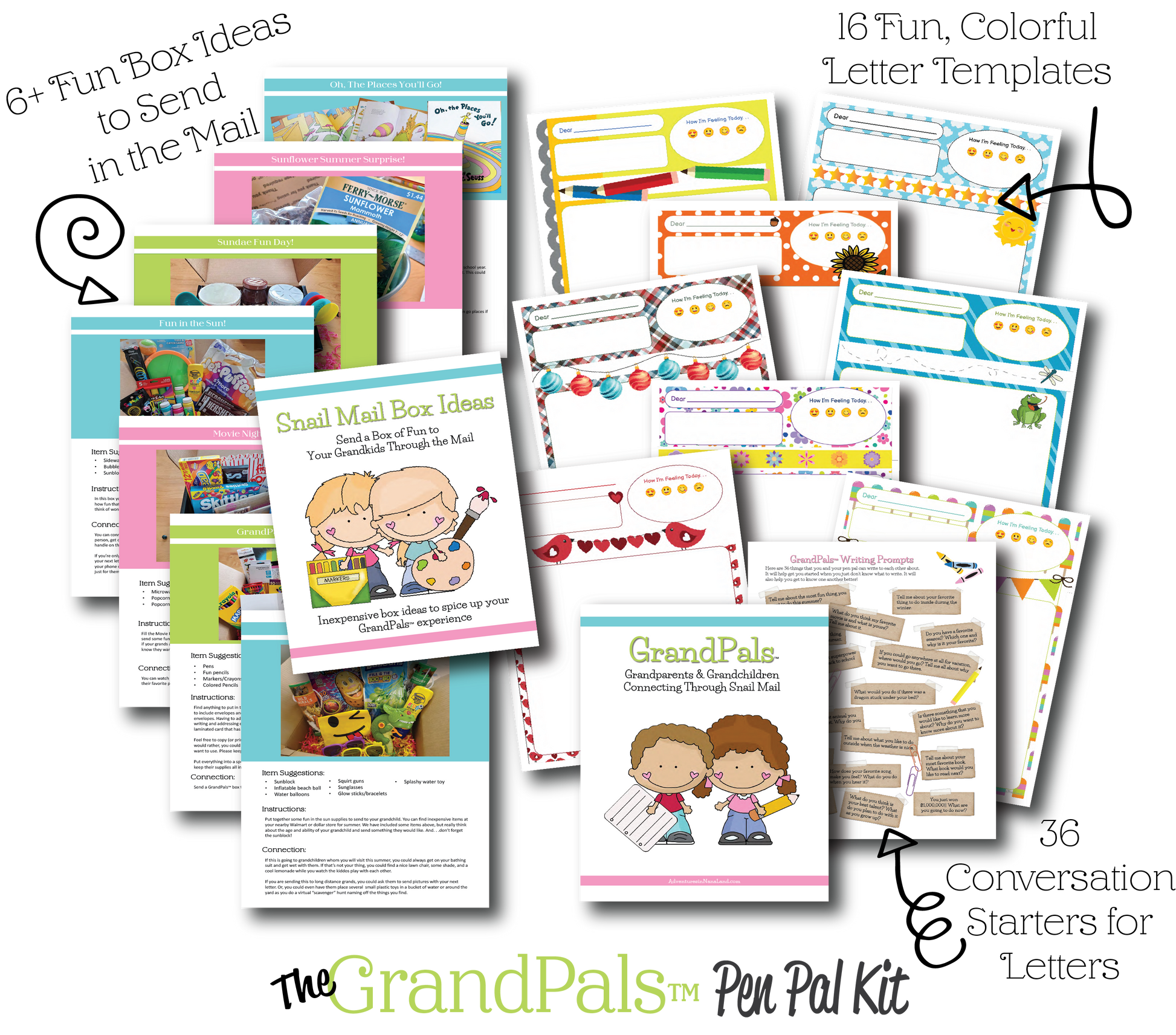 This fun GrandPals™ Pen Pal Packet is a great way to keep in touch with your long distance grandchildren. There are 16 fun, colorful letter templates that have seasonal and holiday themes that make letter writing fun all year round.